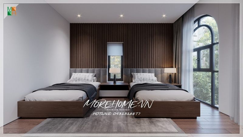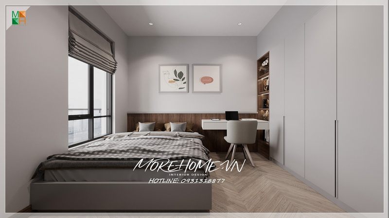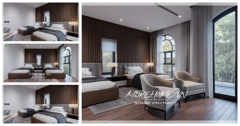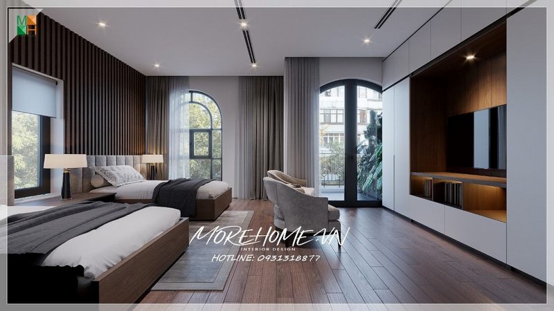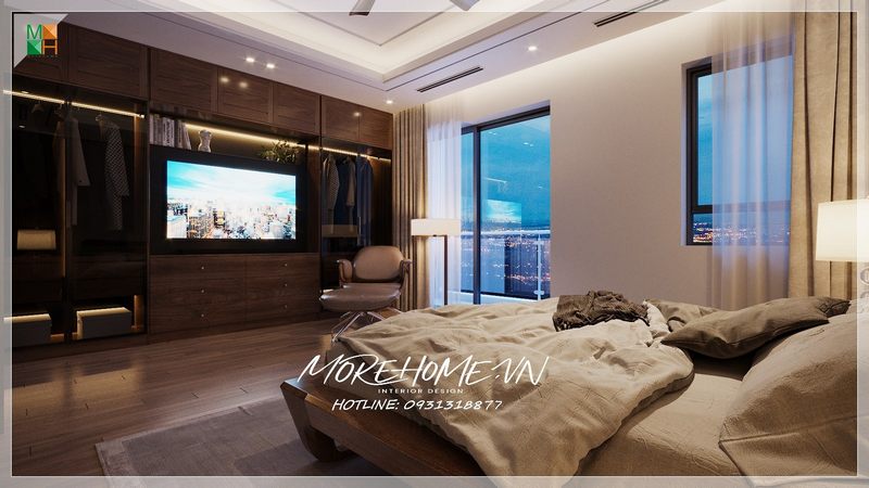 Tủ âm tường liền kề tivi hiện đại tiết kiệm được diện tích không gian phòng ngủ giúp căn phòng gọn gàng và có thẩm mỹ cao.