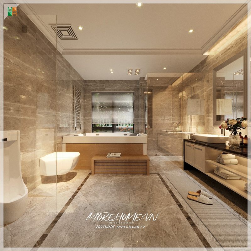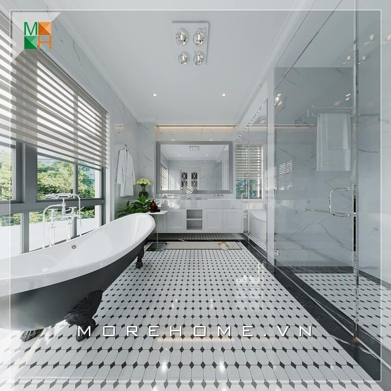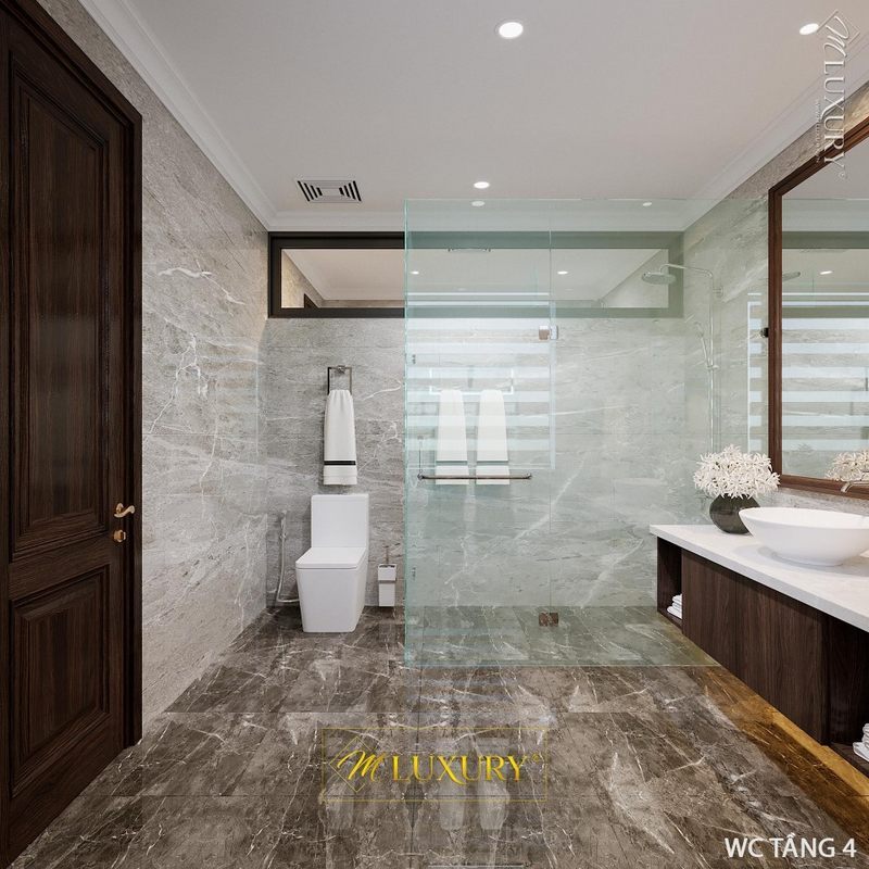 Sở hữu một thiết kế phòng tắm đẹp ấn tượng dành cho nhà phố, biệt thự được ngăn cách bằng vách kính trong suốt, tiện lợi.