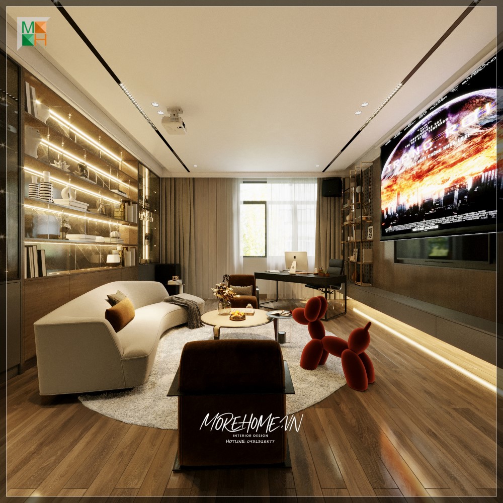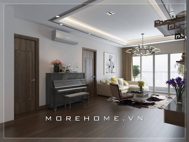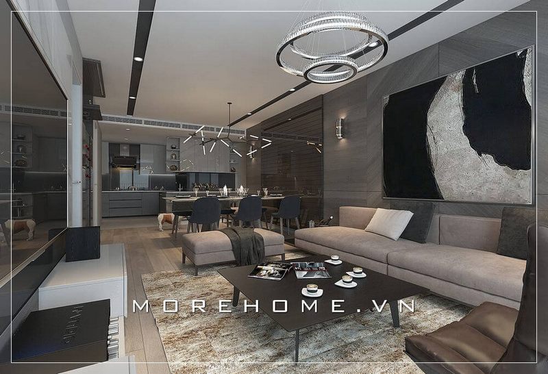 Sự hài hòa trong màu sắc, cách bố trí nội thất phù hợp những mẫu thiết kế phòng khách chung cư hiện đại của Morehome luôn là sự lựa chọn ưu tiên hàng đầu của mọi khách hàng.