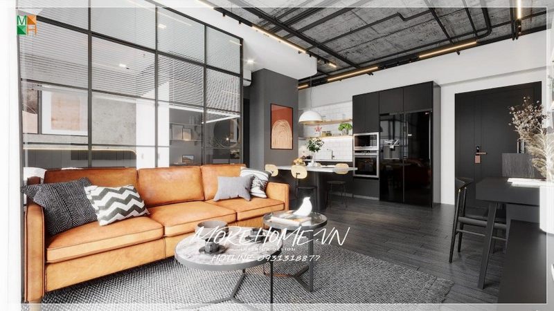 Phong cách hiện đại tinh tế, độc đáo đã tạo nên vẻ đẹp ấn tượng cho phòng khách liền bếp căn hộ chung cư.