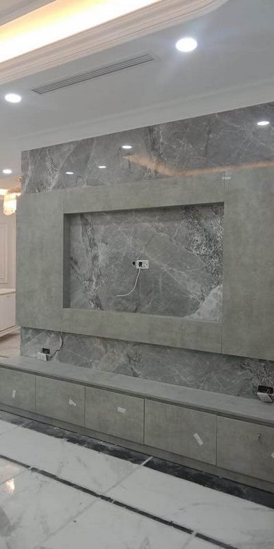 Mẫu vách ốp tivi phòng khách bằng đá nhân tạo vân mây xám cao cấp, mang đến vẻ hiện đại sang trọng cho không gian phòng khách chung cư, nhà phố, biệt thự