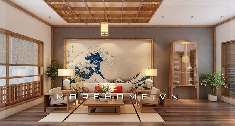 Trong thiết kế nội thất phòng khách chung cư, bạn có thể sử dụng cửa trượt để tạo ra một cửa ngăn đồng thời làm vách trang trí đẹp mắt, độc đáo với phong cách thiết kế nội thất sang trọng của Nhật Bản.