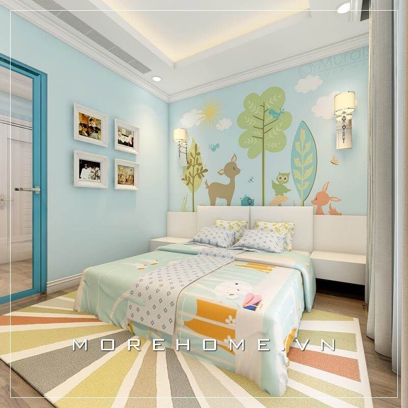 Những gam màu nhẹ nhàng như xanh lam, hồng pastel hoặc trắng ngà thường tạo ra không gian yên tĩnh, giúp trẻ dễ dàng thư giãn. Các nghiên cứu cho thấy, màu xanh lam có khả năng giảm nhịp tim và huyết áp, tạo điều kiện lý tưởng cho một giấc ngủ sâu và phục hồi năng lượng.