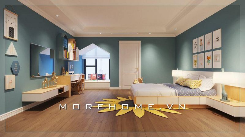 Nội thất phòng ngủ gỗ công nghiệp hiện đại với phong cách đơn giản, tập trung vào công năng sử dụng sẽ giúp bạn có được sự thoải mái tối đa cho con yêu của mình.