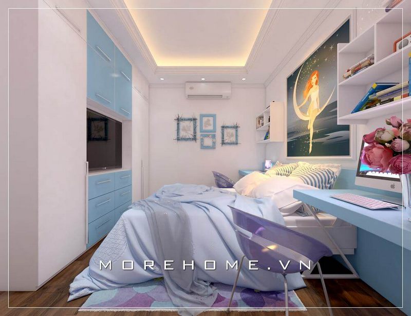 Ngoài ra, việc thiết kế nội thất phòng ngủ của trẻ với những màu sắc này không chỉ mang lại vẻ đẹp thẩm mỹ mà còn là cách nuôi dưỡng tâm hồn trẻ. Các bức tường màu xanh dương có thể tạo ra cảm giác tươi mát, gợi nhớ đến không gian của bầu trời và biển cả, khiến trẻ dễ dàng hơn trong việc thả lỏng. Đặc biệt, việc lựa chọn màu sắc phù hợp cũng giúp tạo nên một môi trường đẹp và an toàn, khuyến khích sự phát triển tích cực trong những năm tháng đầu đời.