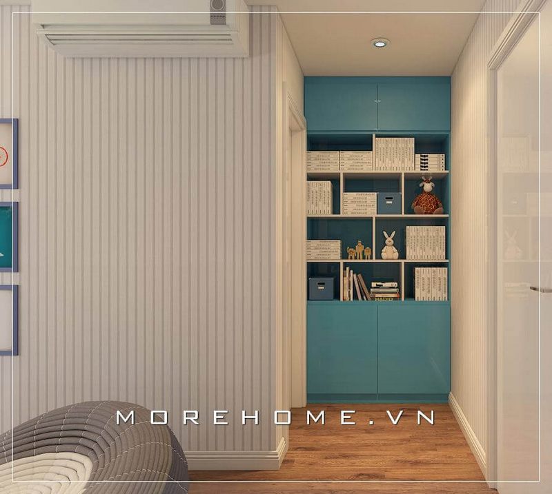 Kệ sách âm tường được thiết kế để tạo ra sự tiện nghi trong phòng ngủ cùng với việc tiết kiệm diện tích của căn phòng.